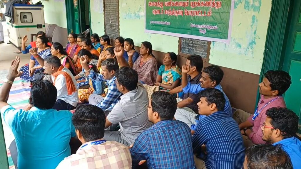 அனைத்து பணிகளையும் புறக்கணித்து வருவாய்த்துறை அலுவலர்கள், ஊழியர்கள் தொடர் காத்திருப்பு போராட்டத்தில் ஈடுப்பட்டு வருகின்றனர்.