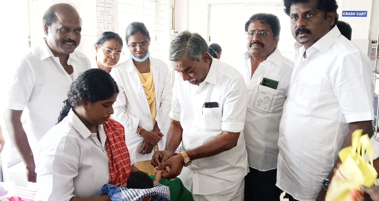இளைஞரணி செயலாளர், துணை முதலமைச்சர் உதயநிதி ஸ்டாலின் அவர்கள் பிறந்த நாளில் பிறந்த அனைத்து குழந்தைகளுக்கும் தங்க மோதிரத்தை அணிவித்து அவர்களை வாழ்த்திய பூண்டி.கே.கலைவாணன் எம்.எல்.ஏ., பிறந்த குழந்தைகளுக்கு தமிழில் பெயர் வைத்து சிறப்பிக்கும்படி வேண்டுகோளை வைத்தார். மேலும் மருத்துமனையில் இருந்த அனைத்து குழந்தைகள் மற்றும் தாய்மார்களுக்கும் இளைஞர் அணியின் சார்பில் ஊட்டச்சத்து பெட்டகங்கள் பரிசாக வழங்கப்பட்டது.