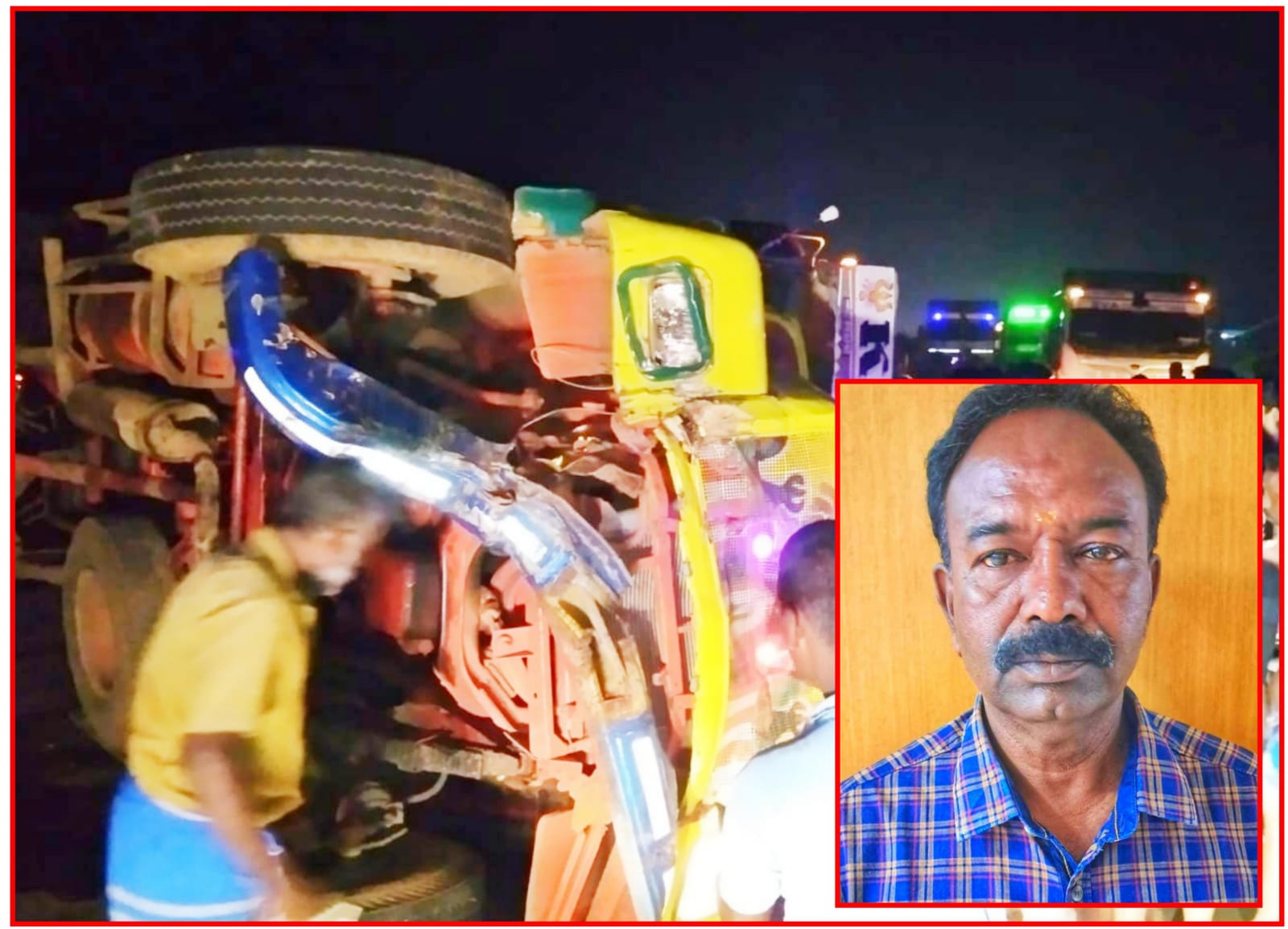 அந்த டிப்பர் லாரி துவரங்குறிச்சி ஐயப்பன்கோவில் அருகேசென்றபோது கட்டுப்பாட்டை இழந்து தடுப்பு சுவற்றில் மோதி நிலை தடுமாறி தலைகுப்புற கவிழ்ந்தது.