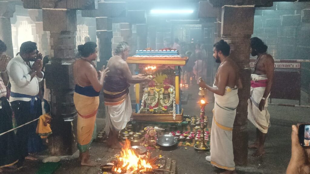 முன்னதாக புனிதநீர் நிரப்பபட்ட சங்குகள் நெல்லின் மீது வைக்கப்பட்டு சிறப்பு பூஜைகள், வழிபாடு மற்றும் தீபாராதனை செய்து தொடர்ந்து சங்குகளில் நிரப்பபட்ட புனித நீரால் மூலவர் சுவேதாரண்யேஸ்வரர் சுவாமிக்கு சிறப்பு அபிஷேகம் செய்யப்பட்டது.பின் சிறப்பு அலங்காரம் மற்றும் மகாதீபாராதனை நடைபெற்றதுது. இதில் திரளான பக்தர்கள் பங்கேற்று சாமி தரிசனம் செய்தனர்.