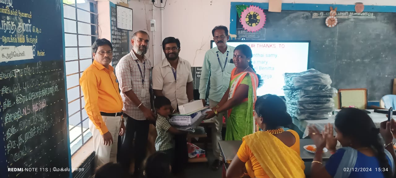 பள்ளியின் தலைமை பொறுப்பாசிரியர் அ. டேவிட் ஞானராஜ் அவர்களின் கடும் சீரிய முயற்சியால் அவரின் நண்பர்களிடம் பள்ளிக்குத் தேவையான வளர்ச்சிக்கு பயன்படக்கூடிய மாணவ, மாணவிகளுக்கு உபயோகப்படக்கூடிய புத்தகப் பை, சீருடை, தேர்வு அட்டை, குடிதண்ணீர் பாட்டில், காலனி (சூ),பென்சில்& பேனா பாக்ஸ், காலுறை, ரிப்பன், பெல்ட், அடையாள அட்டை ஆகியவை பெற்றோர்கள் முன்னிலையில் வழங்கப்பட்டன.