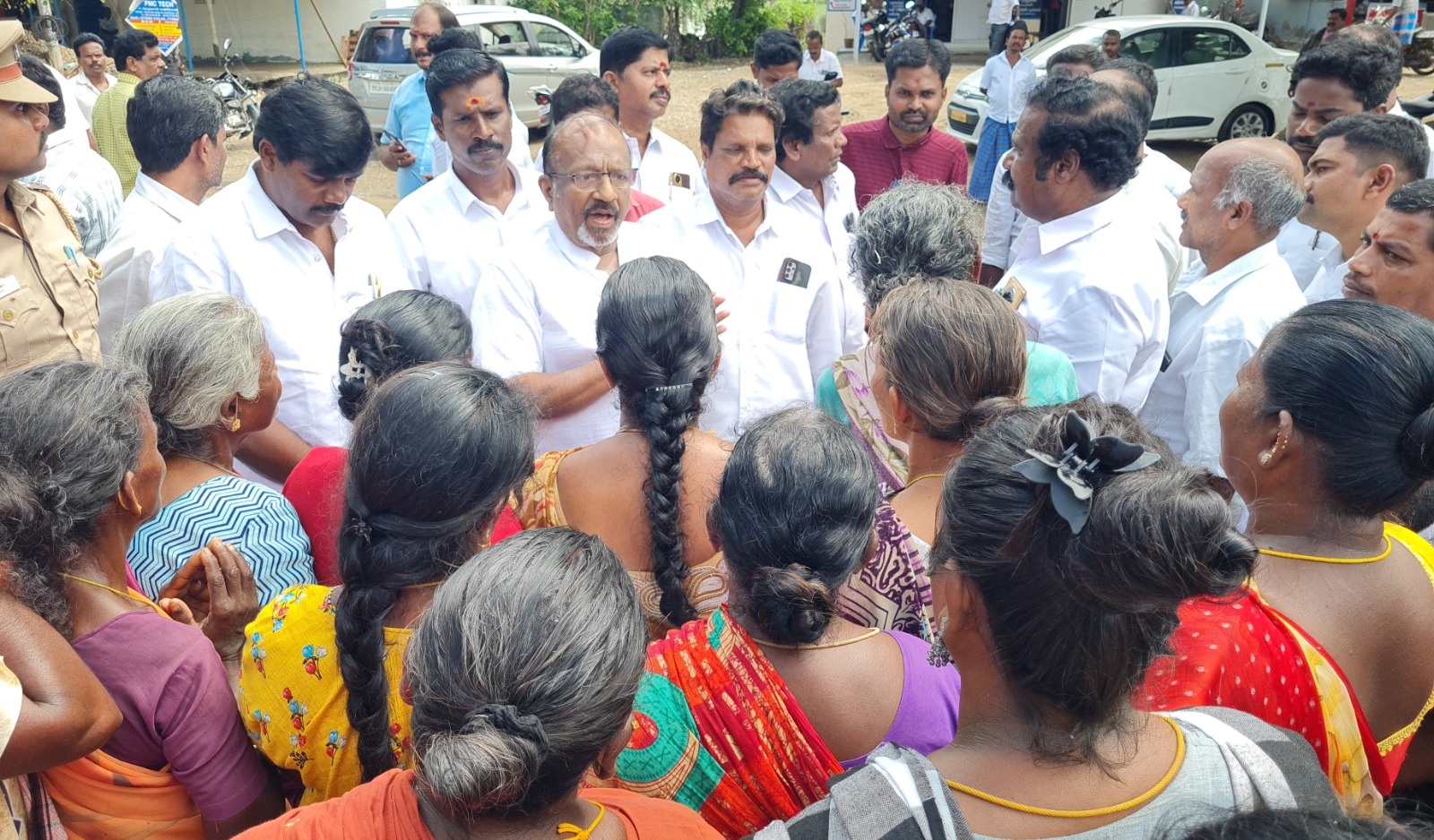 அந்தவகையில் போச்சம்பள்ளி அதன் சுற்று வட்டார பகுதிகளில் பாதிக்கப்பட்ட பொது மக்களை தேமுதிக அவைத்தலைவர் இளங்கோ நேரில் சென்று பார்வையிட்டு ஆறுதல் கூறினார். புளியம்பட்டி ஊராட்சிக்குட்பட்ட இந்திராபுரி கிராத்தில் பார்வையிட சென்றபோது பாதிக்கப்பட்ட மக்கள் 100க்கும் மேற்பட்டோர் ஒன்று கூடி அவைத்தலைவர் இளகோவிடம், பாதிப்பு குறித்து எடுத்து கூறினர்.