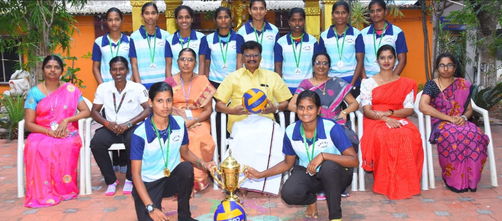 கல்லூரிகளுக்கு இடையேயான கைப்பந்து போட்டியில் வெற்றி பெற்ற விளையாட்டு வீராங்கனைகளுக்கு தங்கப்பதக்கம் மற்றும் கேடயங்கள் வழங்கி கௌரவிக்கப்பட்டு ஊக்குவிக்கப்பட்டது வெற்றி பெற்ற மாணவிகளுக்கு பாராட்டு விழா கல்லூரி ஆடிட்டோரியத்தில் கல்லூரி நிறுவனச் செயலாளர் கம்பும் என்.ராமகிருஷ்ணன் தலைமையில் நடைபெற்றது