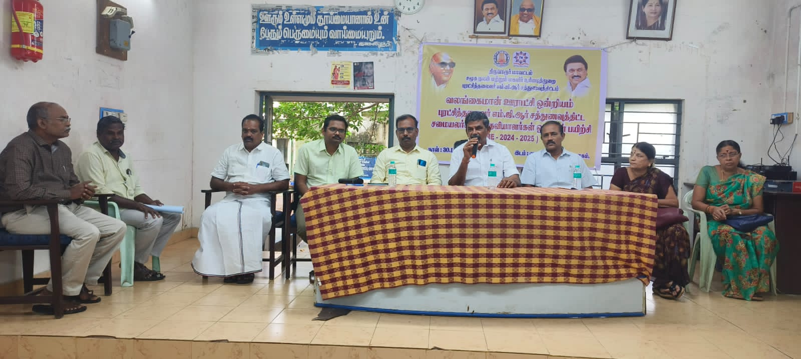 திருவாரூர் மாவட்டம் வலங்கைமான் வட்டாரத்தில் சத்துணவு திட்டத்தின் கீழ் பணி புரியும் சமையலர் மற்றும் சமையல் உதவியாளர்களுக்கு ஒரு நாள் பயிற்சி ஊராட்சி ஒன்றிய கூட்ட அரங்கில் பயிற்சி நடைபெற்றது.