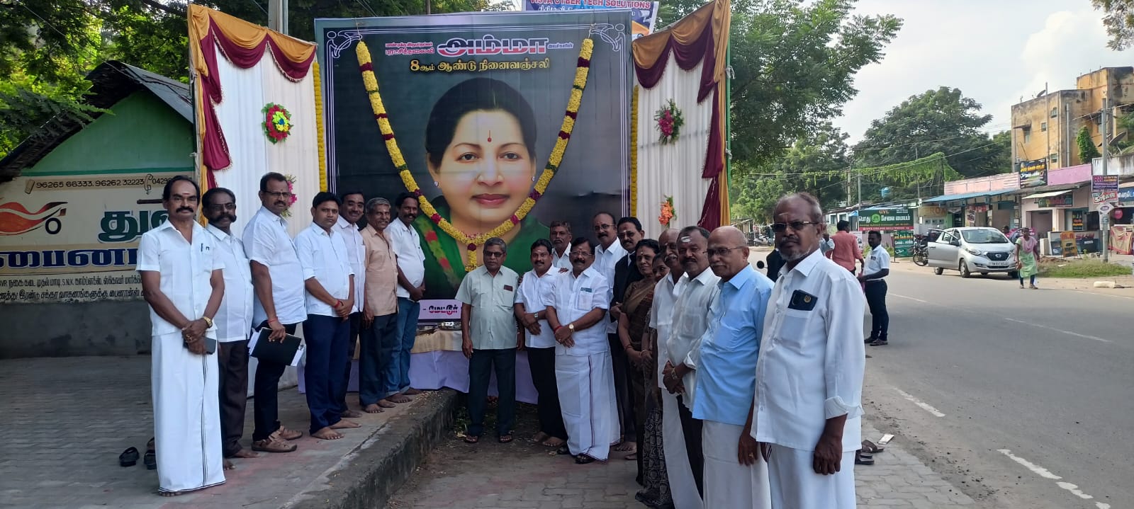 சேலம் மாவட்டம் மேட்டூர் ஜெ ஜெயலலிதா வின் எட்டாம் ஆண்டு நினைவு அஞ்சலி அம்மா திருவுருவப்படத்துக்கு அஞ்சலி செலுத்துகிறார்கள் பாராளுமன்ற உறுப்பினர் எம் சந்திரசேகர் மேட்டூர் நகர செயலாளர் மேற்கு மாவட்டம் மற்றும் உறுப்பினர்கள் கட்சியினர்கள் கலந்து கொண்டனர்