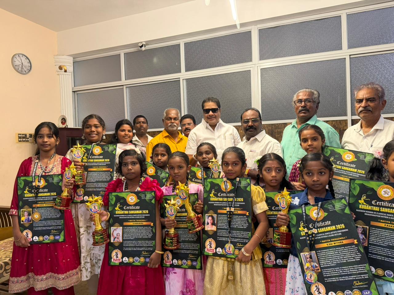 காரைக்காலை சேர்ந்த ஶ்ரீ விஜி – ஶ்ரீ தர்ஷினி நாட்டிய வித்யாலயா சார்பில் கும்பகோணத்தில் நடைபெற்ற உலக சாதனை நிகழ்வில் தர்ஷினி விஜயகுமார் மற்றும் அவர்களின் நடனக் குழு கலந்து கொண்டு நாட்டிய நிகழ்ச்சியை மிகச் சிறப்பாகவும் வெற்றிகரமாகவும் நிறைவேற்றினர்