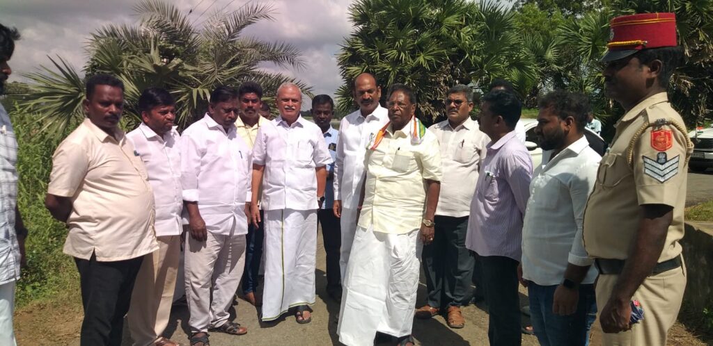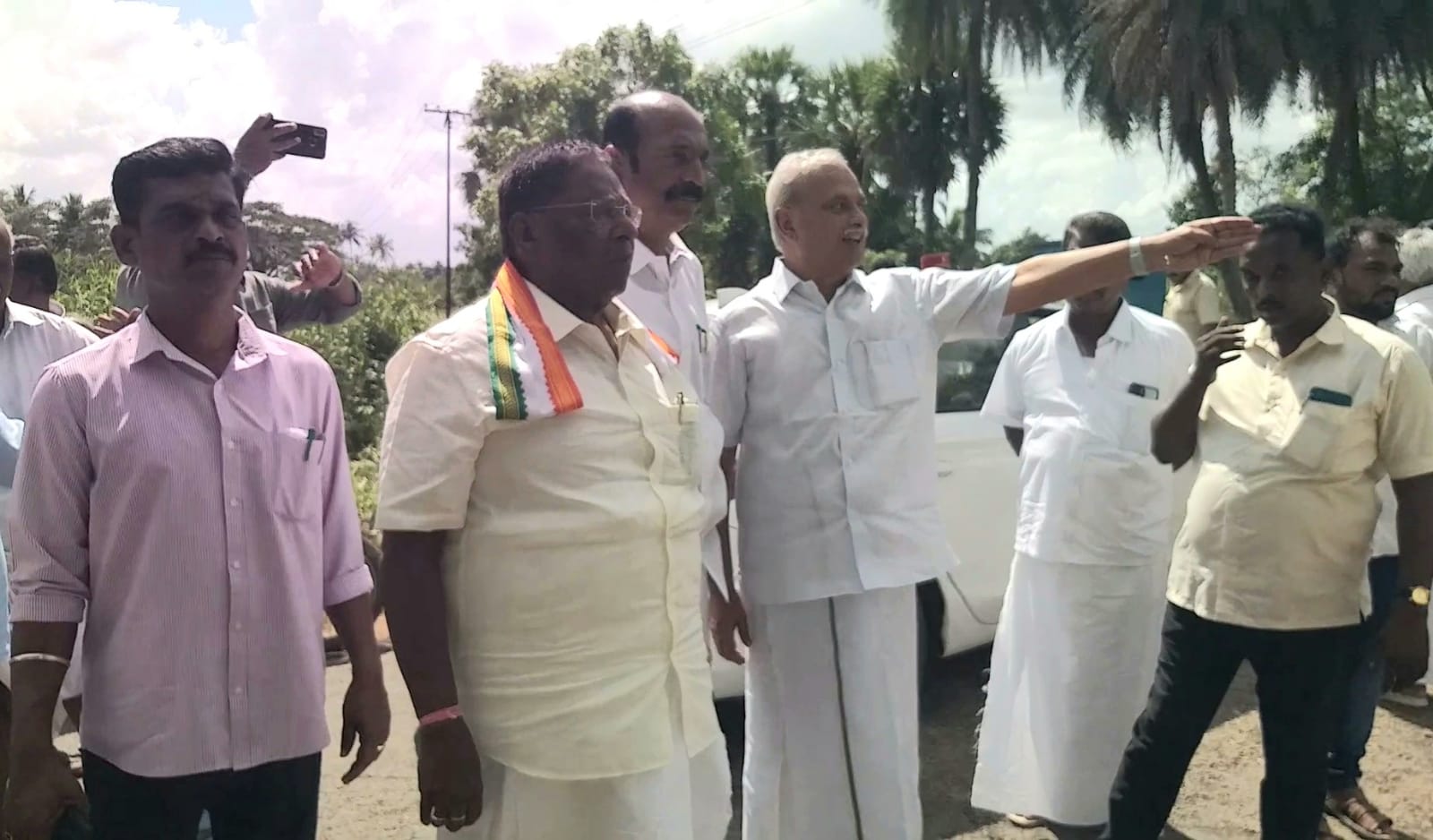 காலை பாராளுமன்ற உறுப்பினர் வைத்தியலிங்கத்துடன் முன்னாள் முதலமைச்சர் நாராயணசாமி, வைத்தியநாதன் எம் எல் ஏ, நெட்டப்பாக்கம் தொகுதியின் புயல் மற்றும் வெள்ள சேதங்களை பார்வையிட்டனர்.
