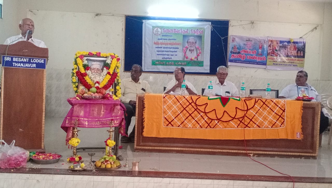 தஞ்சாவூர் அப்பர் தமிழ் மன்ற நிறுவனர், சித்தாந்த ரெத்தினம் முருகன் அடிமை,சிவ பூசகர்,நல்லாசிரியர், ஆம்பல் முருக. வைத்திலிங்கனார் அவர்களின்,4-ஆம் ஆண்டு நினைவேந்தல் நிகழ்ச்ச, பெசன்ட் அரங்கில், வியாழக்கிழமை நடைபெற்றது.