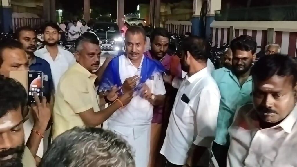 சீர்காழி சட்டைநாதர் சுவாமி கோயில் அதிமுக முன்னாள் அமைச்சர் எஸ். பி. வேலுமணி சுக்ரவார நள்ளிரவு வழிபாட்டில் சாமி தரிசனம்.