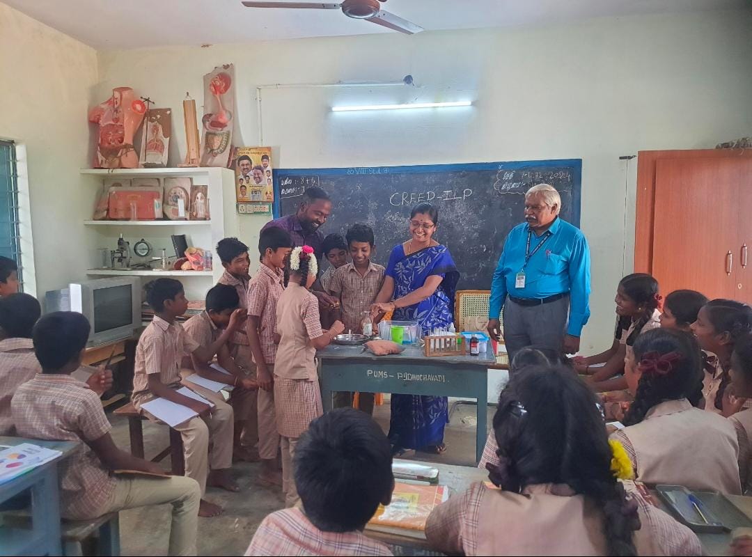 ஆய்வகத்தில் கார்பன் டை ஆக்சைடு தயாரித்தால் மற்றும் அதன் செயல்பாடுகளை உலோகம் மற்றும் அலோகம் வேதிவினை செயல்பாடுகள் மெக்னீசியம் ஹைட்ராக்சைடு தயாரித்தல் போன்ற இயற்பியல் மற்றும் வேதியியல் சார்ந்த சோதனைகளை செய்து காட்டி வாழ்வியலோடு தொடர்பு படுத்தி செயல் விளக்கங்கள் மாணவர்களுக்கு கூறினார்கள். பங்கேற்ற மாணவர்கள் ஆக்கபூர்வமான எழுப்பப்பட்ட வினாக்களுக்கு பதில்கள் கூறப்பட்டது .