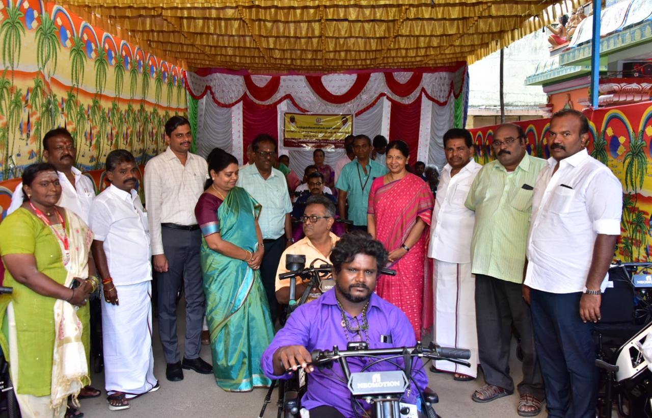 தொடர்ந்து, தூத்துக்குடி அரசு மருத்துவக் கல்லூரி மருத்துவமனை வளாகத்தில் மாற்றுத்திறனாளிகள் நலத்துறையின் சார்பில் முதுகு தண்டுவடம் பாதிக்கப்பட்ட 20 மாற்றுத் திறனாளிகளுக்கு தலா ரூ.1,06,000 மதிப்பிலான சிறப்பு சக்கர நாற்காலிகளை கனிமொழி கருணாநிதி எம்.பி வழங்கினார்.
