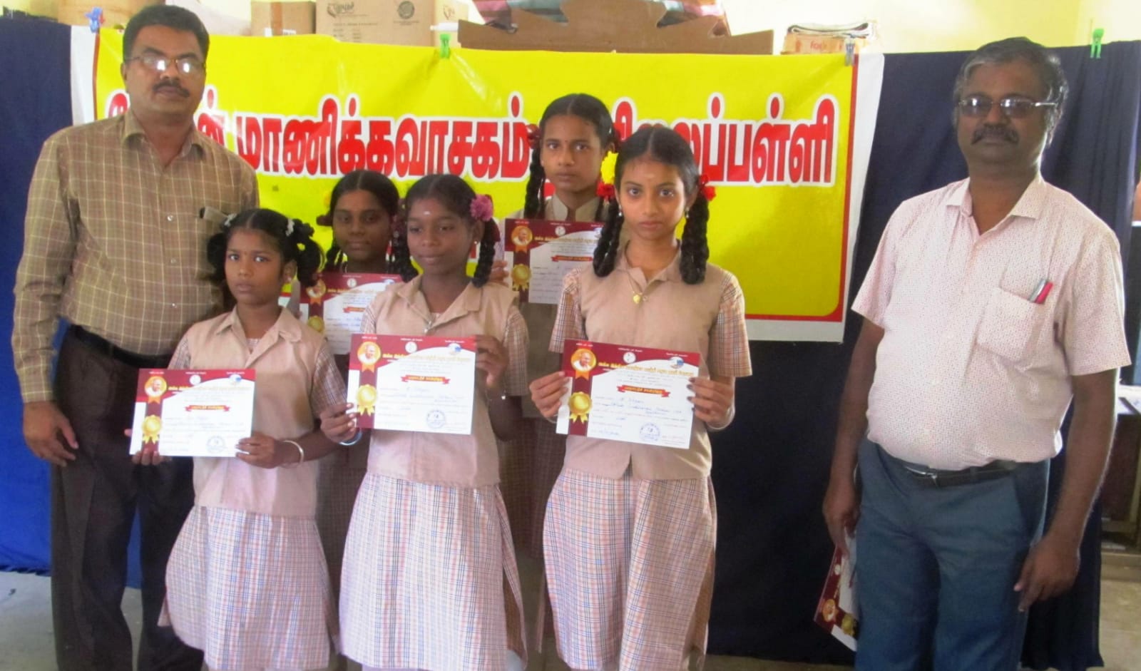 தேவகோட்டை – சிவகங்கை மாவட்டம் தேவகோட்டை சேர்மன் மாணிக்க வாசகம் நடுநிலைப் பள்ளியில் பல்வேறு போட்டிகளில் வெற்றி பெற்ற மாணவர்களுக்கு மாவட்ட கல்வி அலுவலர் சான்றிதழ்களை வழங்கி பாராட்டு தெரிவித்தார்.
