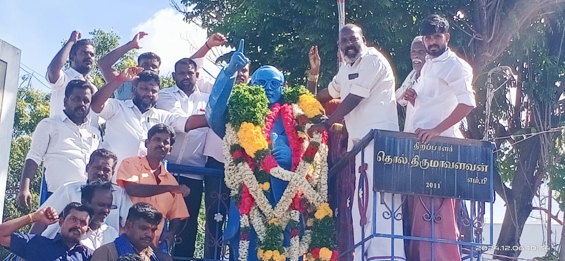 பெரியஊர்சேரி கிராமத்தில் அமைந்துள்ள அவரது திருஉருவசிலைக்கு விடுதலை சிறுத்தைகள் கட்சியின் சார்பாக முன்னாள் மாவட்ட அமைப்பாளர் அதிவீரபாண்டியன், மாலை அணிவித்து மரியாதை செய்து வீரவணக்கம் செலுத்தினர். அருகில்