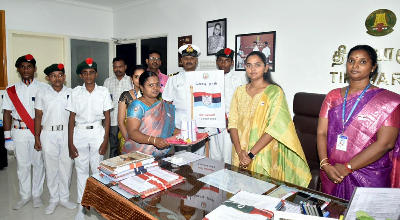 முன்னதாக படைவீரர் கொடிநாள் அனுசரிப்பு 2024-ஐ முன்னிட்டு 07-12-2024 திருவாரூர் மாவட்ட ஆட்சியர் தி.சாருஸ்ரீ, உண்டியலில் பணம் செலுத்தி படைவீரர் கொடிநாள் நிதி வசூலினை துவக்கி வைத்தார்