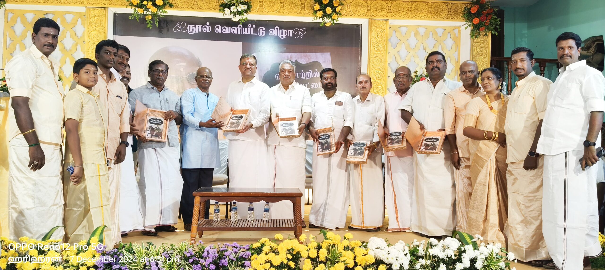 என்ற நூல் வெளியீட்டு விழாவில் தஞ்சாவூர் அரண்மனை தேவஸ்தான பரம்பரை அறங்காவலர் தஞ்சை இளவரசர் சி.பாபாஜி ராஜா போன்ஸ்லே, அரசு வழக்கறிஞர் துளசிஅய்யா ஆகியோர் நூலை வெளியிட்டு சிறப்புரையாற்றினார்.