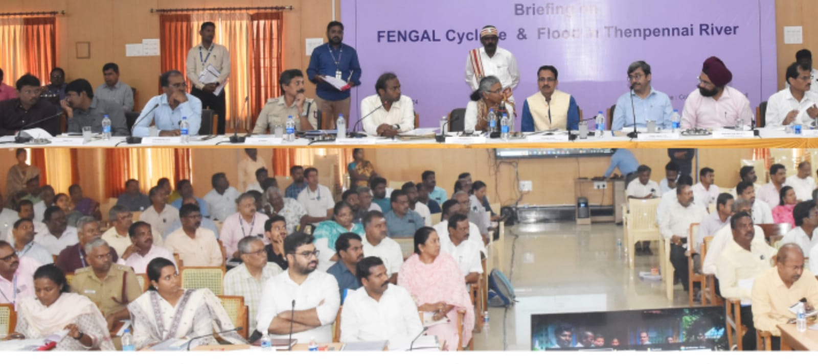 கடலூர் மாவட்டத்தில் பெஞ்சல் புயல் காரணமாக பெய்த கனமழையால் ஏற்பட்ட சேதங்கள் குறித்த மதிப்பீட்டுக் கூட்டத்தில் ஒன்றிய உள்துறை அமைச்சகத்தின் பேரிடர் மேலாண்மை இணை செயலாளர் முனைவர் இராஜேஷ் குப்தா தலைமையில் அனைத்து துறை அலுவலர்களுடன் ஆய்வுக்கூட்டம் நடைபெற்றது