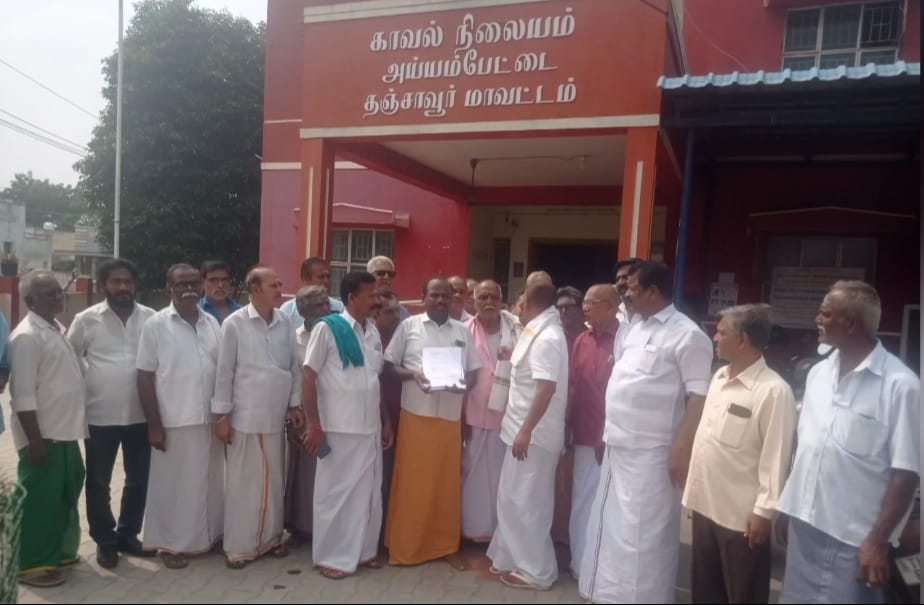 சக்கராப்பள்ளி சக்கரவாகேஸ்வரர் கோவிலில் உள்ள சூரியதேவர் மூல திருமேனியை மீட்டு தர கோரி அய்யம்பேட்டை காவல் நிலையத்தில் முன்னாள் சிலை கடத்தல் தடுப்பு கடத்தல் பிரிவு ஐஜி பொன் .மாணிக்கவேல் மற்றும் கிராம மக்கள் கோரிக்கை மனு கொடுத்தனர்.