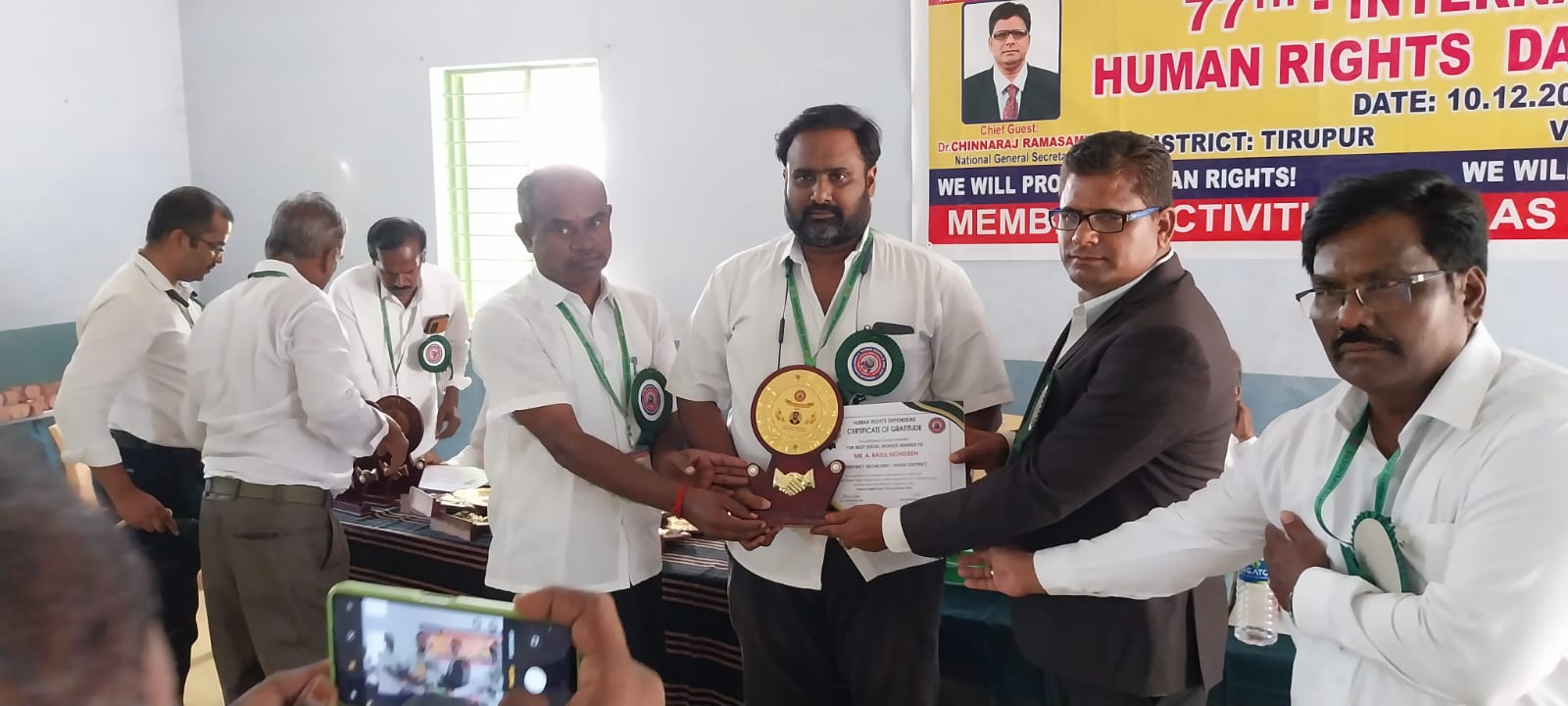 மனித உரிமை பாதுகாவலர்கள்.தேசிய பொதுச்செயலாளர் டாக்டர்.சின்னராஜ் ராமசாமி விருது மற்றும் சான்றிதழ் வழங்கினர்,