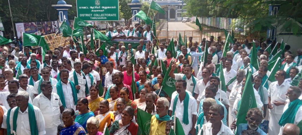 திருவாரூர் மாவட்டத்தில் கடந்த சில நாட்களுக்கு முன்பு பெய்த கன மழை காரணமாக பாதிக்கப்பட்ட பயிர்களுக்கு ஏக்கர் ஒன்றுக்கு 25 ஆயிரம் ரூபாய் நிவாரணம் வழங்க வேண்டியும் ,தொடர் கனமழையால் சேதம் அடைந்த வீடுகள் மற்றும் உயிரிழந்த கால்நடைகளுக்கு உரிய நிவாரணம் வழங்கிட வேண்டியும், 2023 – 2024 ஆண்டிற்கான பயிர் காப்பீடு இழப்பீட்டுத் தொகையை முழுமையாக விவசாயிகளுக்கு வழங்க வேண்டும் என வலியுறுத்தியும் தமிழ்நாடு விவசாயிகள் நல சங்கத்தின் சார்பாக 500க்கும் மேற்பட்ட விவசாயிகள் மாவட்ட ஆட்சியர் அலுவலகம் முன்பு திரண்டு ஆர்ப்பாட்டத்தில் ஈடுபட்டார்கள் அப்பொழுது காப்பீட்டு நிறுவனத்திற்கு எதிரான கோஷங்களை எழுப்பினார்கள் இந்த ஆர்ப்பாட்டம் தமிழக விவசாயிகள் நல சங்க தலைவர் சேதுராமன் தலைமையில் நடைபெற்றது