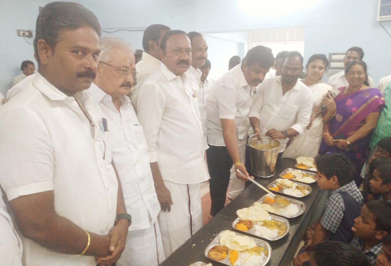தஞ்சாவூர், டிச- 10. தஞ்சாவூர் மேம்பாலம் அருகே உள்ள பார்வை குன்றியவர்களுனக்கான அரசினர் மேல்நிலைப்பள்ளி மாணவரகளுக்கு துணைமுதல்வர் உதயநிதி ஸ்டாலின் பிறந்த நாளையொட்டி திமுக மாநகர ஆதிதிராவிடர் நலக் குழு சார்பில் மதிய உணவு வழங்கப்பட்டது .