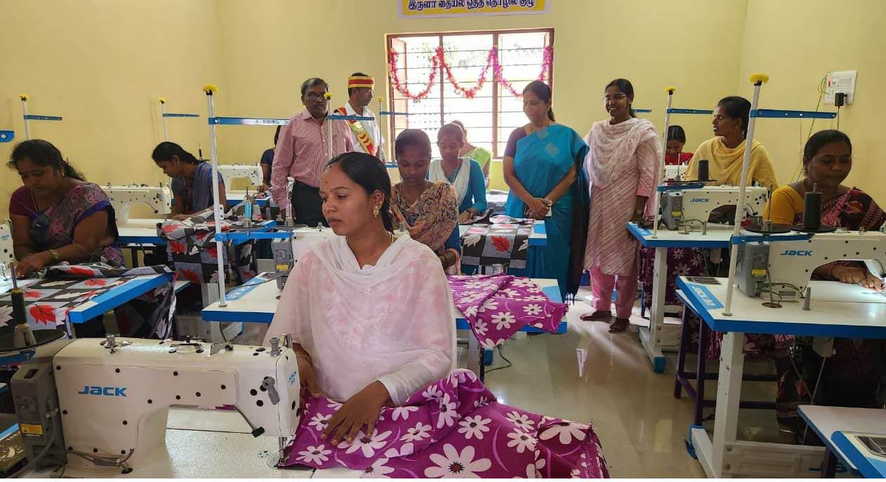 தருமபுரி மாவட்டம், பாப்பிரெட்டிப்பட்டி ஊராட்சி ஒன்றியம், இருளப்பட்டி ஊராட்சி மன்ற அலுவலகத்தில் மகளிர் திட்டத்தின் சார்பில் மீட்கப்பட்ட கொத்தடிமைகள் விடியல் திட்டத்தின்கீழ், இருளர் இன மக்களின் வாழ்வாதாரத்திற்கு தொழில் குழு அமைக்கப்பட்டு, ரூ.10.00 இலட்சம் மதிப்பீட்டில் தொழிற்கூடத்தினை மாவட்ட ஆட்சியர் சாந்தி குத்துவிளக்கேற்றி திறந்துவைத்து, 25 பயனாளிகள் பயன்பெறும் வகையில் தொழிற்கூடத்திற்கான தையல் இயந்திரங்களை வழங்கினார்.