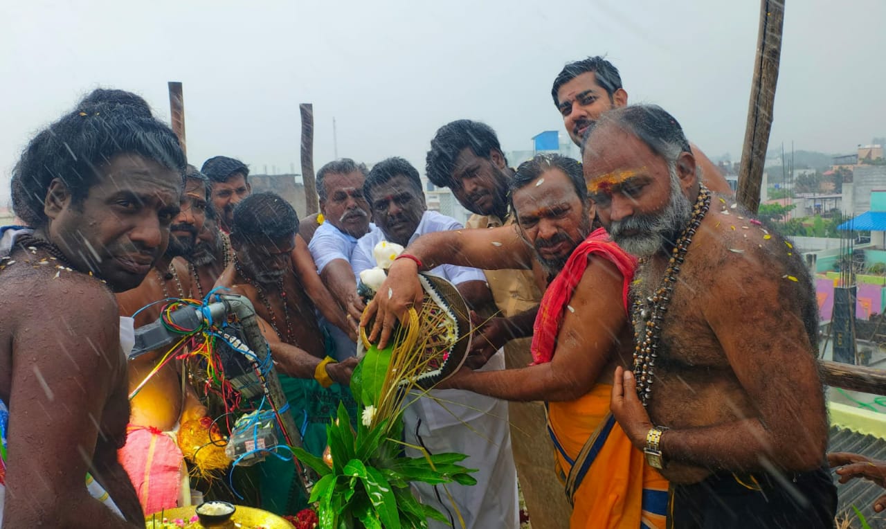 திண்டுக்கல் மேட்டுப்பட்டி அருள்மிகு ஐயப்பன் கோவில் கும்பாபிஷேக விழா கொட்டும் மழையில் வெகு விமர்சையாக நடைபெற்றது