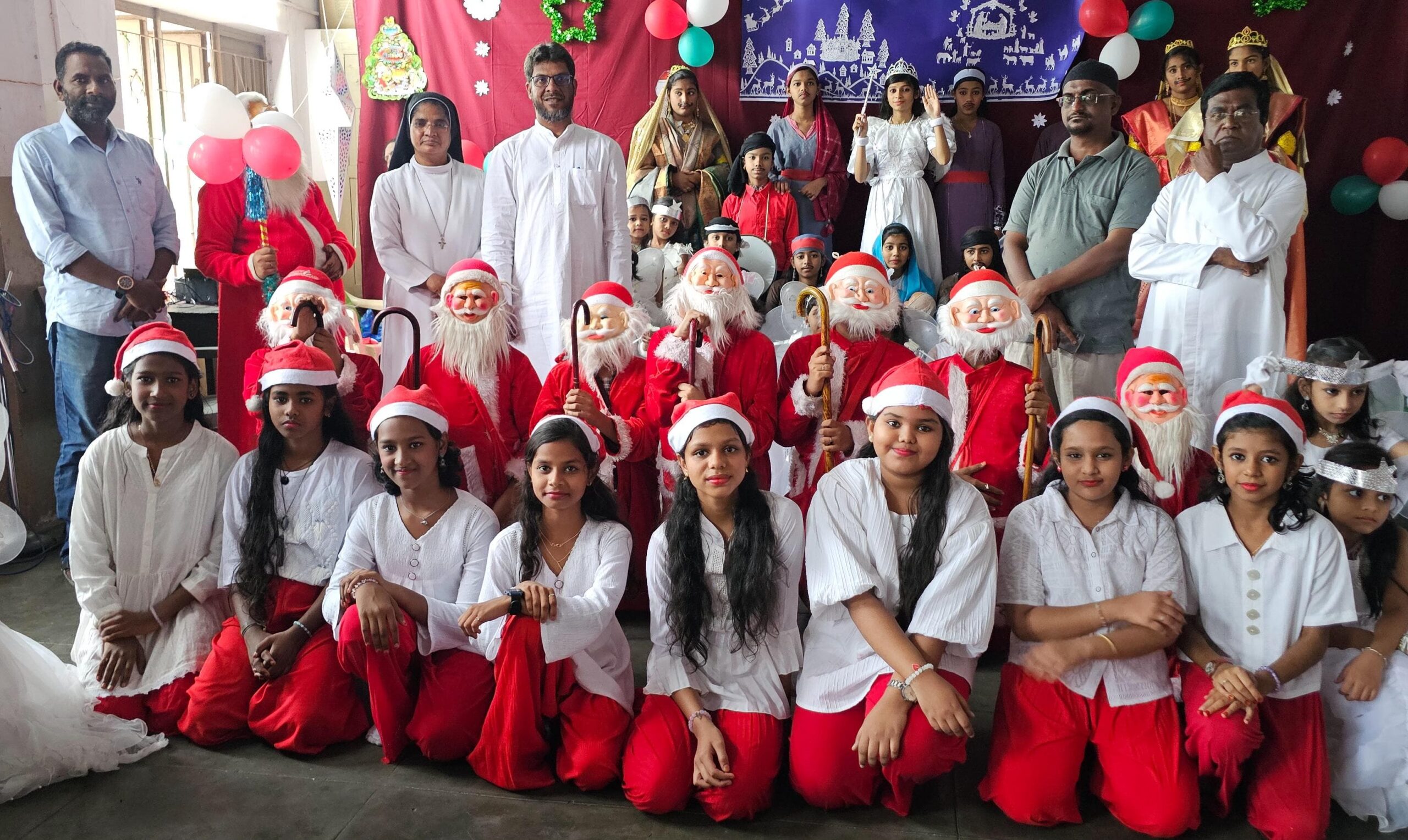 இதனை தொடர்ந்து பள்ளி ஆசிரியைகளும் கிறிஸ்துமஸ் தாத்தா வேடமிட்ட மாணவியர்களுடன் இணைந்து உற்சாக நடனமாடினர்..