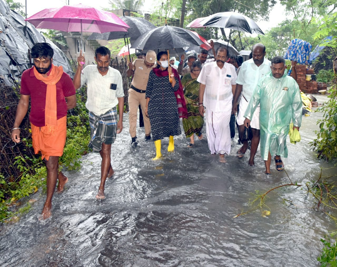 கனமழையின் காரணமாக, நன்னிலம் வட்டம், சிறுபுலியூர் ஊராட்சி பூரதாழ்வார் குடி குக்கிராமத்தில் வயலிருந்து நீர் வெளியேறி அக்கிராமத்தில் நீர் சூழ்ந்துள்ளதனை மாவட்ட ஆட்சியர் நேரில் பார்வையிட்டு அப்பகுதிகளில் வசித்துவரும் 30 குடும்பங்களை பாவட்டக்குடி பள்ளி முகாமிற்கு அனுப்பி வைத்தார் முகாம்களில் தங்கவைக்கப்பட்டுள்ள மக்களுக்கு தேவையான உணவு, குடிநீர் போன்றவற்றை உடனடியாக ஏற்பாடு செய்து தரக்கோரி உரிய அலுவலர்களுக்கு அறிவுறுத்தினார்.