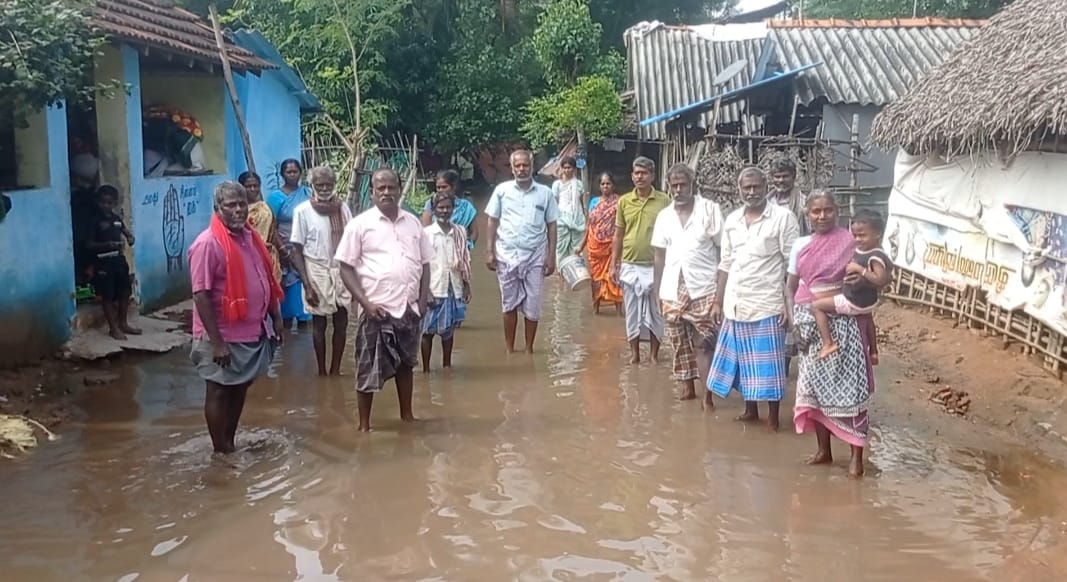 மேலும் வடிகால்வாய்க்காலை தூர்வாரி கிராமத்தின் வீடுகளில் சூழ்ந்துள்ள மழை நீரை நீர் மோட்டார் மூலம் வெளியேற்ற வேண்டுமென கிராம மக்கள் கோரிக்கை வைத்துள்ளனர்.