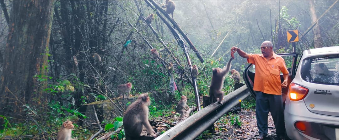 அறிந்ததும் சம்பவ இடத்திற்கு நேரடியாக சென்று அங்குள்ள வனவிலங்குகளுக்கு பழம் மற்றும் உணவு பொருட்களை கம்பம் புதுப்பட்டி அனுமந்தன்பட்டி பேரூராட்சி செயல் அலுவலர் சா இளங்கோவன் வழங்கி வனவிலங்குகளும் பசியார வேண்டும் என்று நல்ல எண்ணத்தில் வனவிலங்குகளுக்கு வழங்கினார்