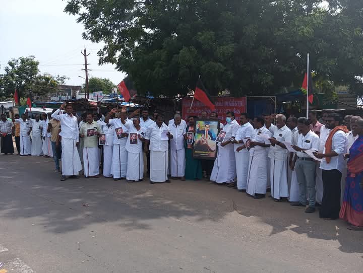 இராமேஸ்வரம்திமுக நகர் கழக செயலாளரும் நகர் மன்ற தலைவர் .கே.இ.நாசர்கான் தலைமையில் மாபெரும் கண்டன ஆர்ப்பாட்டம் நடைபெற்றது இதில் மாநில மாவட்ட நகர் வார்டு கழக நிர்வாகிகள் அனைவரும் கலந்து கொண்டு கண்டன முழக்கமிட்டனர்