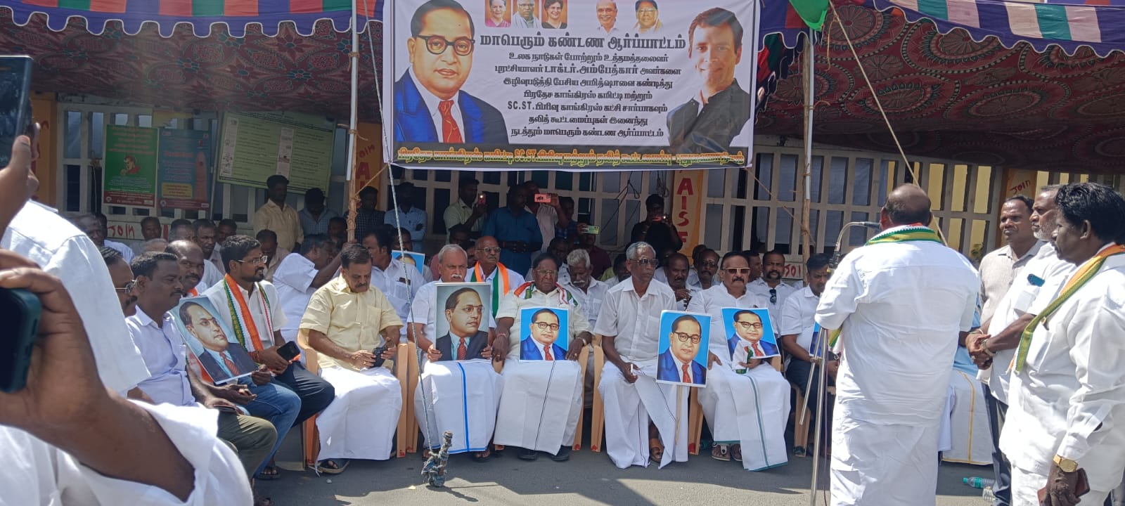புதுச்சேரி பிரதேச காங்கிரஸ் கமிட்டி எஸ்சி எஸ்டி பிரிவு மற்றும் தலித் கூட்டமைப்பு சார்பில் உலக நாடுகள் போற்றும் உத்தமத் தலைவர் புரட்சியாளர் டாக்டர் அம்பேத்கர் அவர்களை இழிவுபடுத்திப் பேசிய உள்துறை அமைச்சர் அமித்ஷா வை கண்டித்து மாபெரும் கண்டன ஆர்ப்பாட்டத்தில் ஆயிரத்திற்கும் மேற்பட்டவர்கள் தொண்டர்கள் கலந்து கொண்டனர்