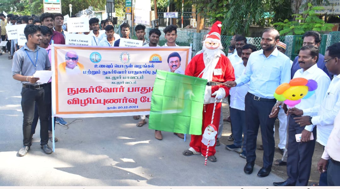 கடலூர் மாவட்டம், உணவு பொருள் வழங்கல் மற்றும் நுகர்வோர் பாதுகாப்புத் துறையின் சார்பில் டவுன்ஹாலிருந்து அண்ணா பாலம் வரை கல்லூரி மாணவர்கள் பங்கேற்ற நுகர்வோர் பாதுகாப்பு விழிப்புணர்வு பேரணியை மாவட்ட ஆட்சித்தலைவர் திரு.சிபி ஆதித்யா செந்தில்குமார் நேற்று கொடியசைத்து துவக்கி வைத்தார்.