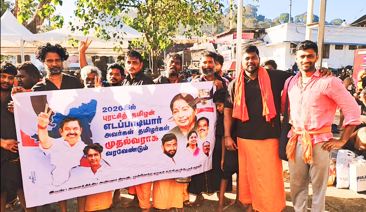 மதுராந்தகம் சட்டமன்ற உறுப்பினர் கே.மரகதம் குமாரவேல் சபரிமலையில் சிறப்புதரிசனம் செய்து வழிபட்டு கருங்குழி பேரூர் கழக செயலாளர் ஆர்.டி.ஜெயராஜ் ஆலோசனை ஏற்று மீண்டும் எடப்பாடியார் மீண்டும் அரசணை ஏற்ற வேண்டும் என பேனர்