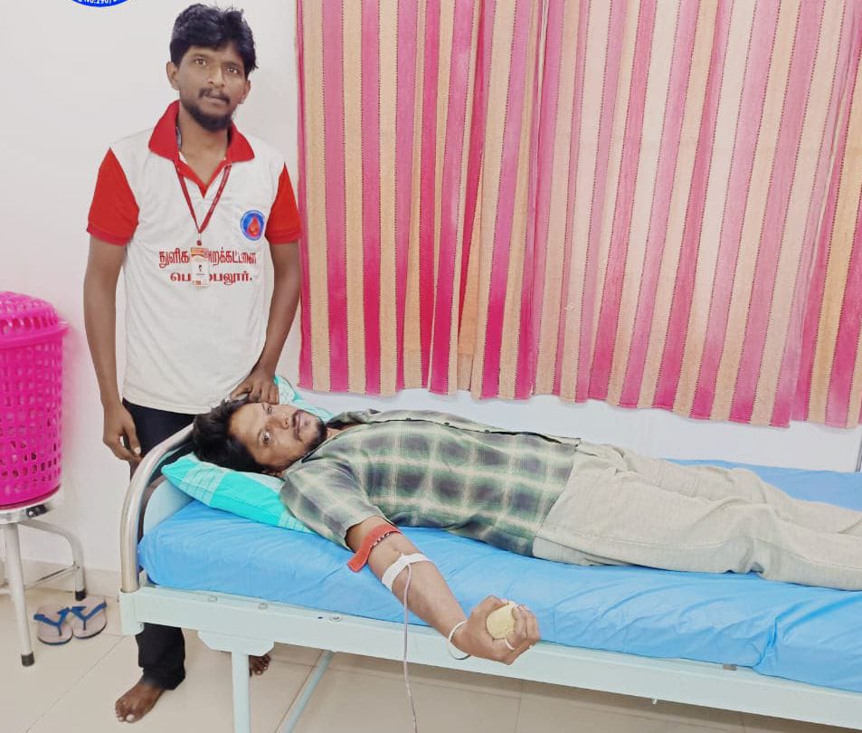 பெரம்பலூர் மாவட்டம், சிறுவாச்சூரில் உள்ள தனலட்சுமி சீனிவாசன் மருத்துவமனையில் சிகிச்சை பெற்று வரும் அரியலூர் மாவட்டம், உடையார்பாளையம் தாலுகா, அனைக்குளம் கிராமத்தைச் சேர்ந்த தமிழ்ச்செல்வன் மனைவி கண்ணகி என்பவர்க்கு சிறுநீரக அறுவை சிகிச்சைக்காக A+ ரத்தம் வழங்கிய பெரம்பலூர் மாவட்டம், பாரதிதாசன் நகரை சேர்ந்த