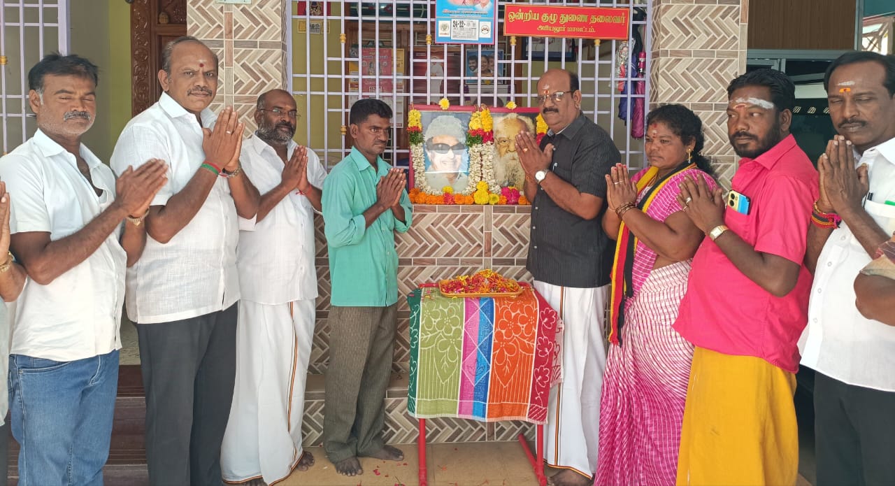 மறைந்த முன்னாள் முதல்வர் எம்ஜிஆர் மற்றும் தந்தை பெரியார் ஆகியோரின் நினைவு தினத்தையொட்டி அரியலூர் மாவட்ட தேமுதிக சார்பில் அரியலூர் மாவட்ட தேமுதிக தலைமை அலுவலகத்தில் இருவருக்கும் மாவட்ட கழக செயலாளர் தலைமையில் மாலை அணிவித்து மலர்தூவி மரியாதை செலுத்தி போது உடன் கலந்து கொண்டவர்கள்