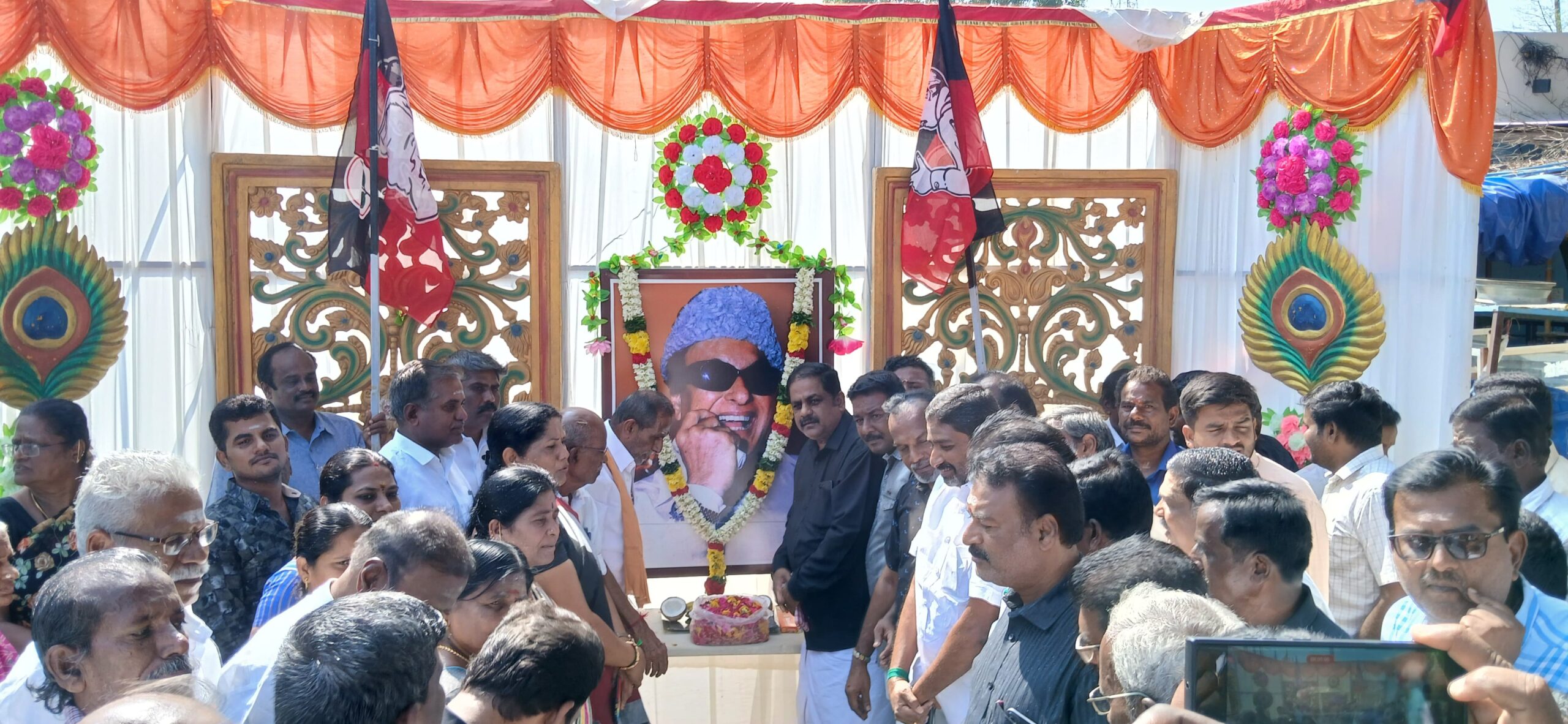 முன்னதாக திருப்பூர் காமராஜபுரம் சாலை, பகுதியில் அலங்கரித்து வைக்கப்பட்டிருந்த எம்.ஜி.ஆரின் உருவப்படத்துக்கு,தாராபுரம் நகரச் செயலாளர் சி ஆர் ராஜேந்திரன் மாலை அணிவித்து, பூஜைகள் செய்து,மலர் தூவி மரியாதை செலுத்தினார்.