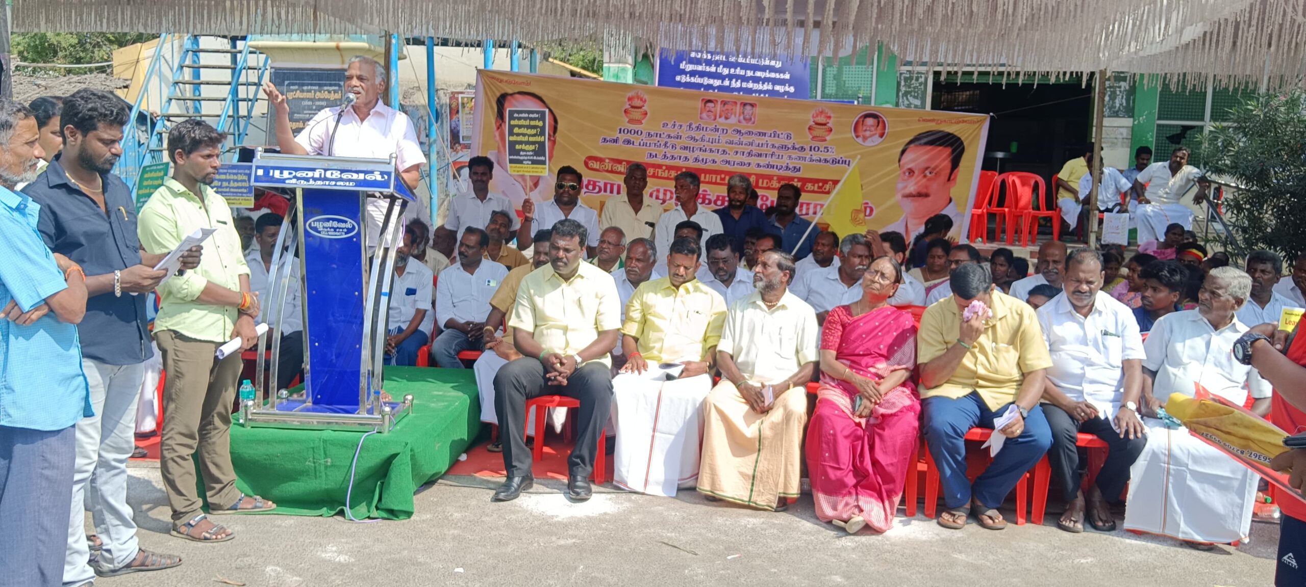 10.5 சதவீத வன்னியர் இட ஒதுக்கீடு, தர மறுக்கும் திமுக அரசை கண்டித்து, விருதாச்சலத்தில் பாமக சார்பில், மாபெரும் தொடர் முழுக்க போராட்டம் நடைபெற்றது.