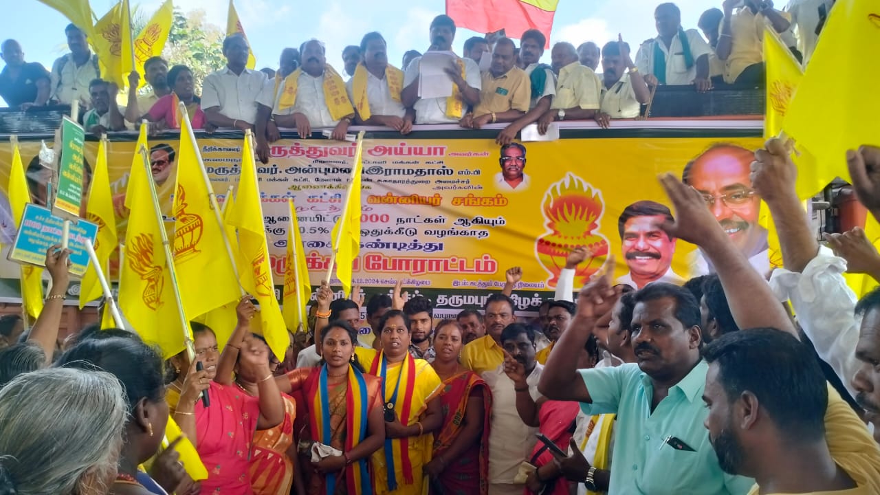 தர்மபுரி கிழக்கு மாவட்டம் கடத்தூர் பேருந்து நிலையம் அருகில் பாட்டாளி மக்கள் கட்சி மாவட்ட செயலாளர் அரசாங்கம் தலைமையில் தொடர் முழக்க போராட்டம் நடைபெற்றது இந்த ஆர்ப்பாட்டத்தில் முதலமைச்சர் ஸ்டாலின் அவர்கள் உடனடியாக வன்னியர்களுக்கு உச்ச நீதிமன்ற ஆணையின்படி உரிய தரவுகளைப் பெற்று 10.5% சதவீத இட ஒதுக்கீடு வழங்க வேண்டும் என்றும் அதேபோல் அனைத்து சமுதாய மக்களும் பயன்பெறக்கூடிய வகையில் சாதி வாரி மக்கள் தொகை கணக்கெடுப்பு எடுத்து அனைத்து சமுதாய மக்களுக்கும் அவரவர் மக்கள் தொகைக்கு ஏற்ப கல்வி வேலைவாய்ப்பில் இட ஒதுக்கீடு வழங்க வேண்டும் என்று வலியுறுத்தி