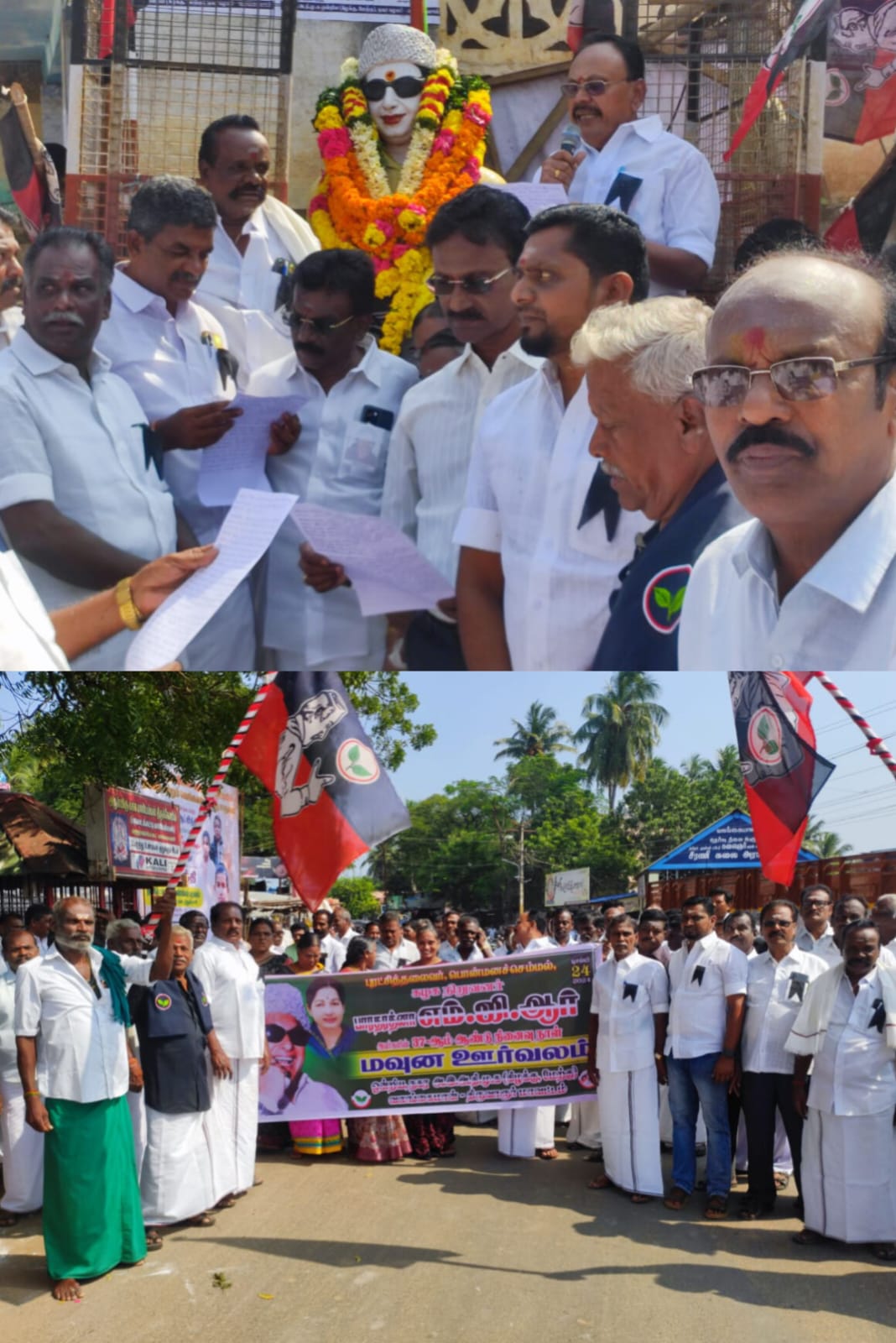 திருவாரூர் மாவட்டம் வலங்கைமான் வரதராஜன்பேட்டை தெரு மகா மாரியம்மன் ஆலயம் அருகில் இருந்து, வலங்கைமான் மேற்கு, கிழக்கு ஒன்றிய,நகர அஇஅதிமுக சார்பில் தமிழக முன்னாள் முதல்வர் பாரத ரத்னா எம்ஜிஆர் அவர்களின் 37- ஆம் ஆண்டு நினைவு தினத்தை முன்னிட்டு, வலங்கைமான் மேற்கு ஒன்றிய செயலாளரும், ஊராட்சி ஒன்றிய குழு தலைவருமாகிய குமாரமங்கலம் கே. சங்கர் தலைமையில், வலங்கைமான் கிழக்கு ஒன்றிய செயலாளர் சாத்தனூர் யூ.இளவரசன், நகர செயலாளர் சா. குணசேகரன் ஆகியோர் முன்னிலையில் மௌன ஊர்வலம் புறப்பட்டு கும்பகோணம் ரோடு, காளியம்மன் கோவில், கடைத்தெரு வழியாக ராமர் கோவில் பேருந்து நிறுத்தம் அருகில் உள்ள எம்ஜிஆர் சிலையை வந்தடைந்தது.