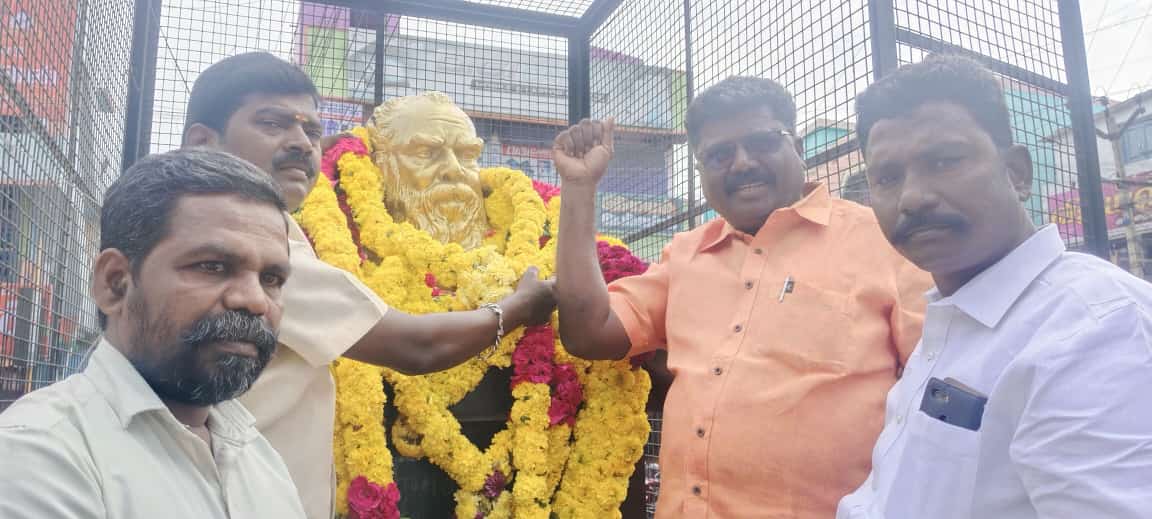 பெரம்பலூரில் பெரியார் சிலைக்கு மாலை அணிவித்து மரியாதை செலுத்தினர் விசிக வினர்.