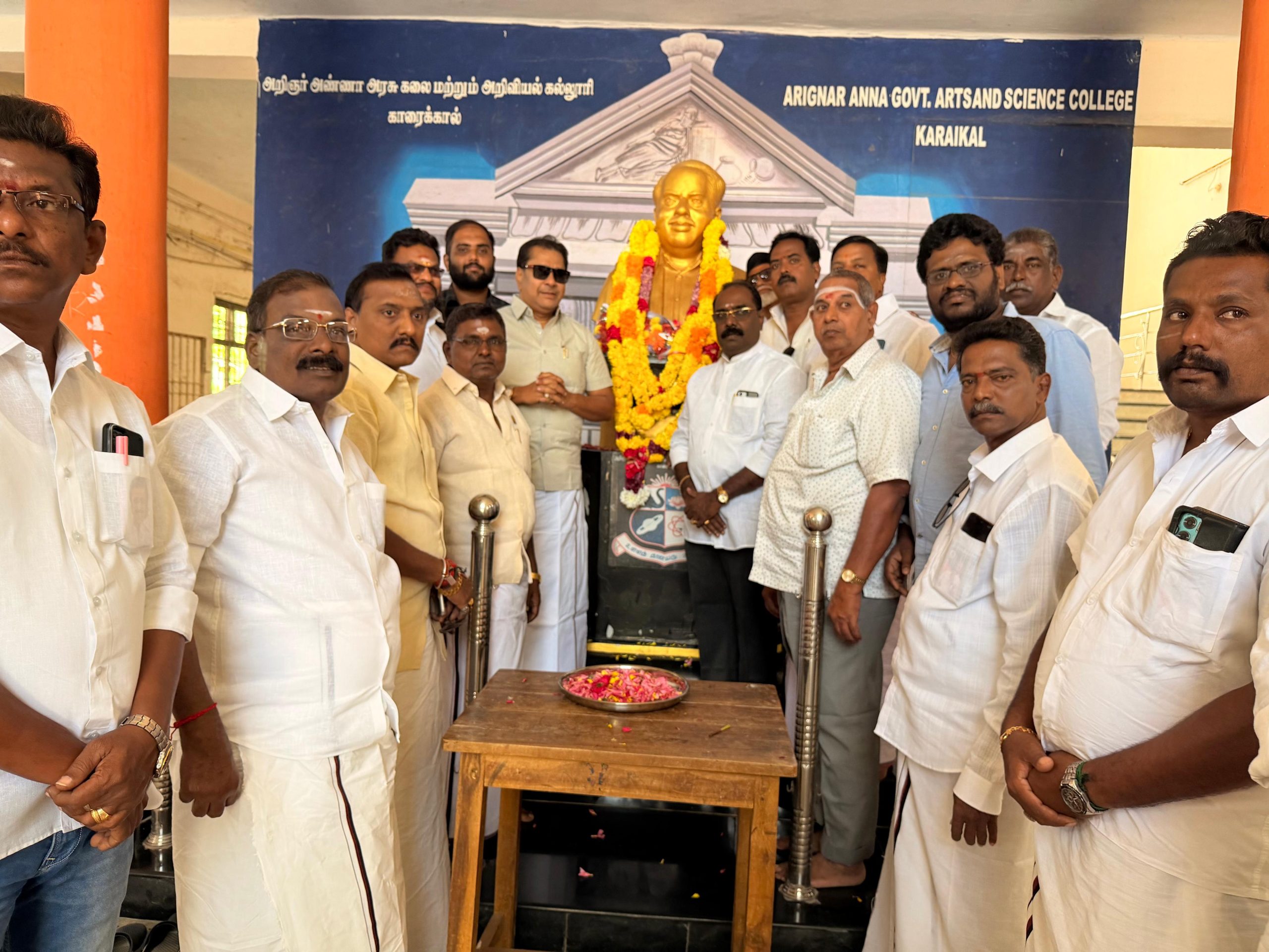 பேரறிஞர் அண்ணா அவர்களின் 57- வது நினைவு தினத்தை முன்னிட்டு காரைக்கால் மாநில திமுக சார்பில் தலைமை அலுவலகமான கலைஞர் அகத்திலும் மற்றும் அறிஞர் அண்ணா கல்லூரியில் அமைந்துள்ள பேரறிஞர் அண்ணா அவர்களின் திருவுருவச் சிலைக்கு நமது மாநில கழக அமைப்பாளர் நாஜிம், ML A அவர்கள் மாலை அணிவித்து மலர்தூவி மரியாதை செய்தார்கள்.