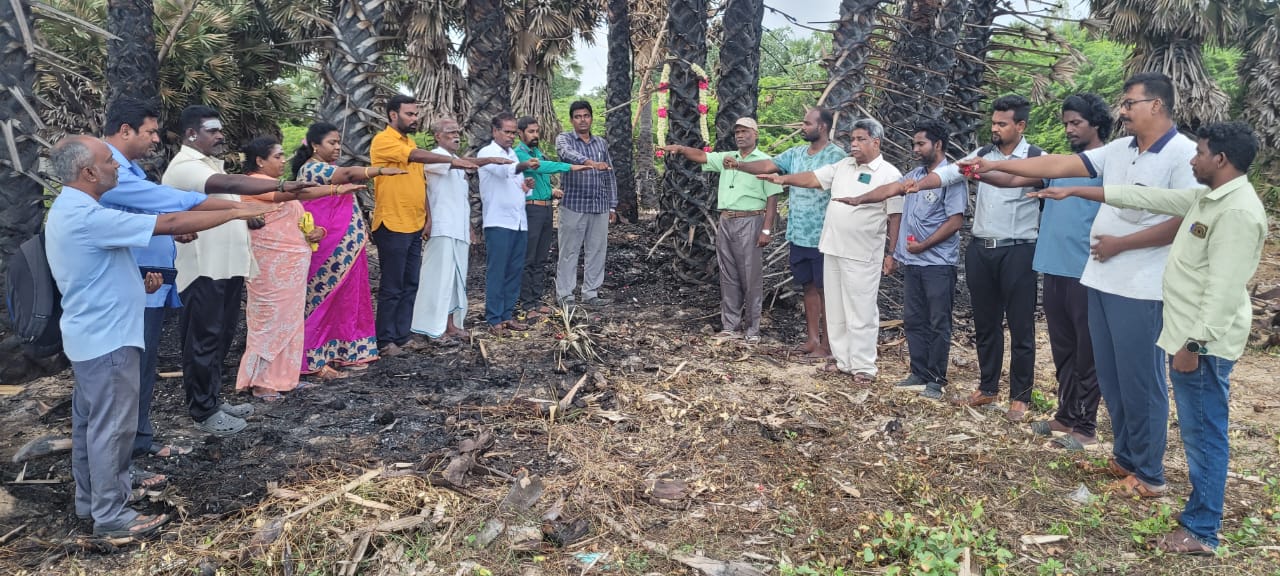 புதுக்குப்பம் கிராமத்தில் சில மர்ம நபர்களால் தீயிட்டு எரிக்ப்பட்ட சுமார் 30 பனை மரங்கள் முழுமையாக எரிந்து விட்டன இதனை கண்டித்து புதுச்சேரி அனைத்து சமூக அமைப்பு ஒன்றினைந்து நண்பர்களும் ஒன்று கூடி நமது தமிழரின் பாரம்பரிய பண்பாடு கலாச்சாரம் நிறைந்த வாழ்வியல் மரத்தை தீட்ட சமூக விரோதிகளை உடனடியாக கண்டுபிடித்து உரிய தண்டனை கொடுக்க வேண்டும் என்று வேண்டுகோள் விடுத்து தீயிட்டு எரிக்கப்பட்ட பனை மரத்தின் கீழ் நின்று பூமாலை தூவி அஞ்சலி செலுத்தி உறுதிமொழி எடுக்கப்பட்டது
