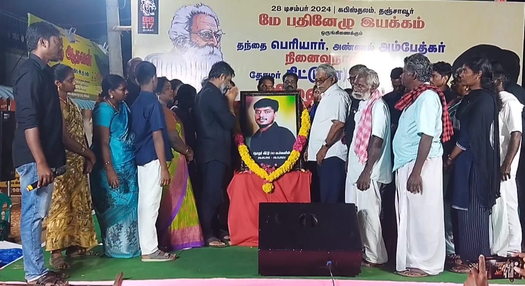தஞ்சாவூர் மாவட்டம் கும்பகோணம் அருகே கபிஸ்தலத்தில் தந்தை பெரியார், டாக்டர் அம்பேத்கர், மற்றும் தோழர் கிட்டு நினைவேந்தல் பொதுக்கூட்டம் மே 17 இயக்க செயலாளர் பிரபாகரன் தலைமையில் நடைபெற்றது.