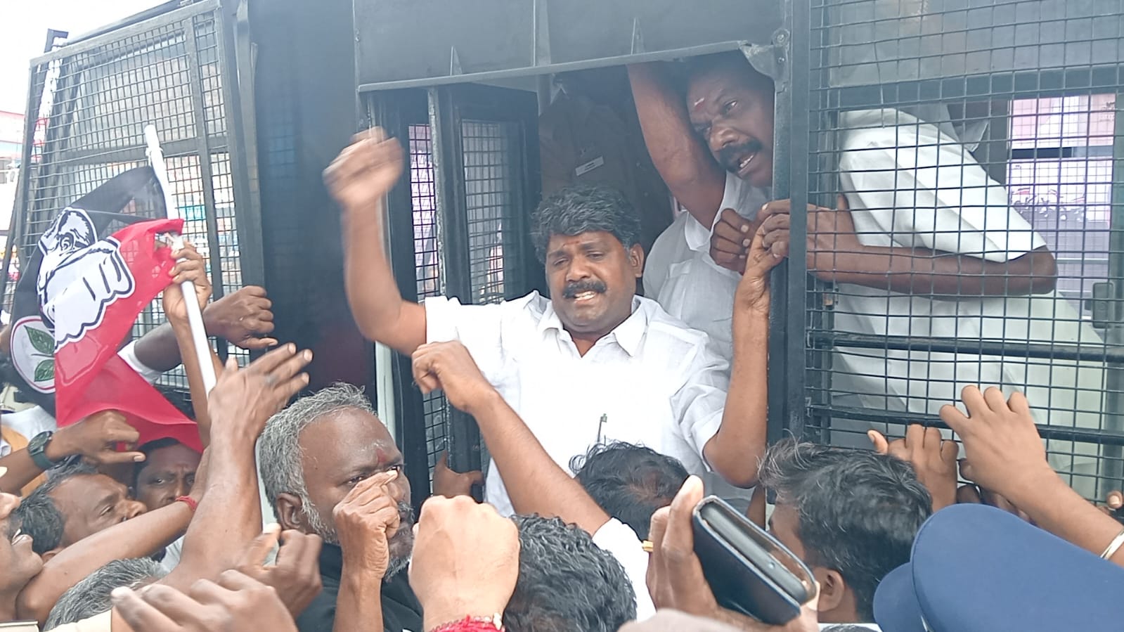 அந்த வகையில் அண்ணா பல்கலைக்கழகத்தில் நடந்த பாலியல் குற்றத்திற்கு எதிராக திமுக அரசை கண்டித்து இன்று பெரம்பலூரில் நடைபெற்ற ஆர்ப்பாட்டத்தின் போது மாவட்ட கழக செயலாளர் இளம்பை. தமிழ்ச்செல்வனை பேசவிடாமலே, பாதியிலேயே காவல்துறை கைது செய்து இவரோடு ஆர்ப்பாட்டத்திற்கு வந்திருந்த மாநில, மாவட்ட, நகர, ஒன்றிய, கிளை கழக நிர்வாகிகள் உட்பட பலரும் கைது செய்யப்பட்டு தனியார் மண்டபத்தில் அடைத்திருக்கிறார்கள் போலீசார். இந்த செய்தி மாவட்டத்தில் பெரும் பரபரப்பை ஏற்படுத்தியுள்ளது.