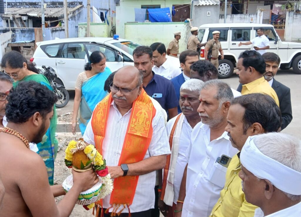 திருப்பூர் தாராபுரம் பகுதியில் உள்ள கோட்டைவாசல் ஆஞ்சநேயர் கோவிலில், ஆஞ்சநேயர் ஜெயந்தியை ஒட்டி நடந்த சிறப்பு பூஜையில் மணிப்பூர் மாநில உயர் நீதிமன்ற தலைமை நீதிபதி கிருஷ்ணகுமார் சாமி தரிசனம்