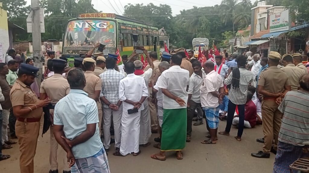 இதில் மாவட்டச் செயலாளர் கண்ணையன், மாநில குழு உறுப்பினர் மாசிலாமணி, மாவட்ட குழு உறுப்பினர் பிரபு, மற்றும் நிர்வாகிகள் , பெண்கள் உட்பட நூற்றுக்கும் மேற்பட்ட கிராம மக்கள் கையில் குழந்தைகளுடன் கொடியைப் பிடித்தவாறு சாலையில் அமர்ந்து சாலை மறியல் ஆர்ப்பாட்டத்தில் ஈடுபட்டனர்.