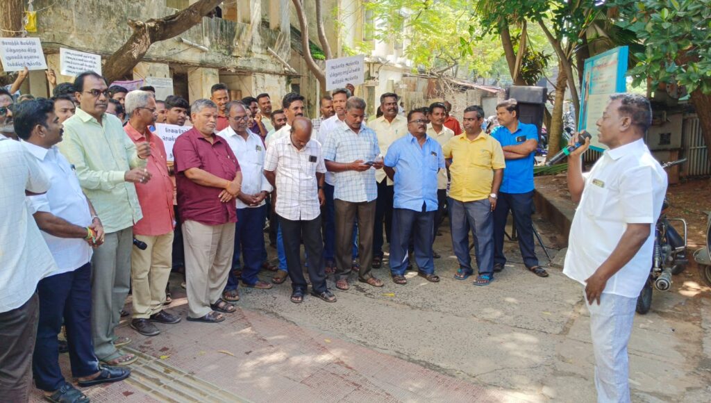 இதன் ஒரு பகுதியாக சண்டிகர் மின்துறை பொறியாளர்கள் மற்றும் தொழிலாளர்களுக்கு ஆதரவாக புதுச்சேரி மின்துறை ஊழியர்கள் சங்க தலைவர் தணிகாசலம் தலைமையில் உப்பளம் மின்துறை தலைமை அலுவலகத்தில் கண்டன ஆர்ப்பாட்டம் நடைபெற்றது.