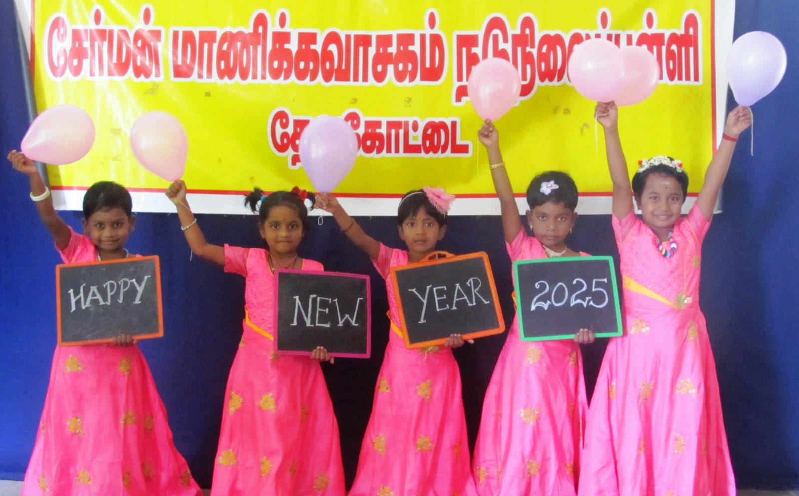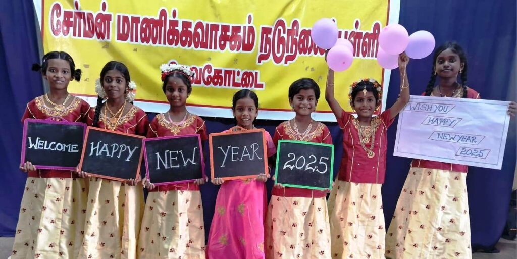 ஆங்கில புத்தாண்டே வருக ! நலம் எல்லாம் தருக ! என ஆங்கில வருடபிறப்பை பலூன் பறக்க விட்டு,கவிதை பாடி வரவேற்கும் சிவகங்கை மாவட்டம் தேவகோட்டை சேர்மன் மாணிக்க வாசகம் நடுநிலைப் பள்ளி மாணவிகள்