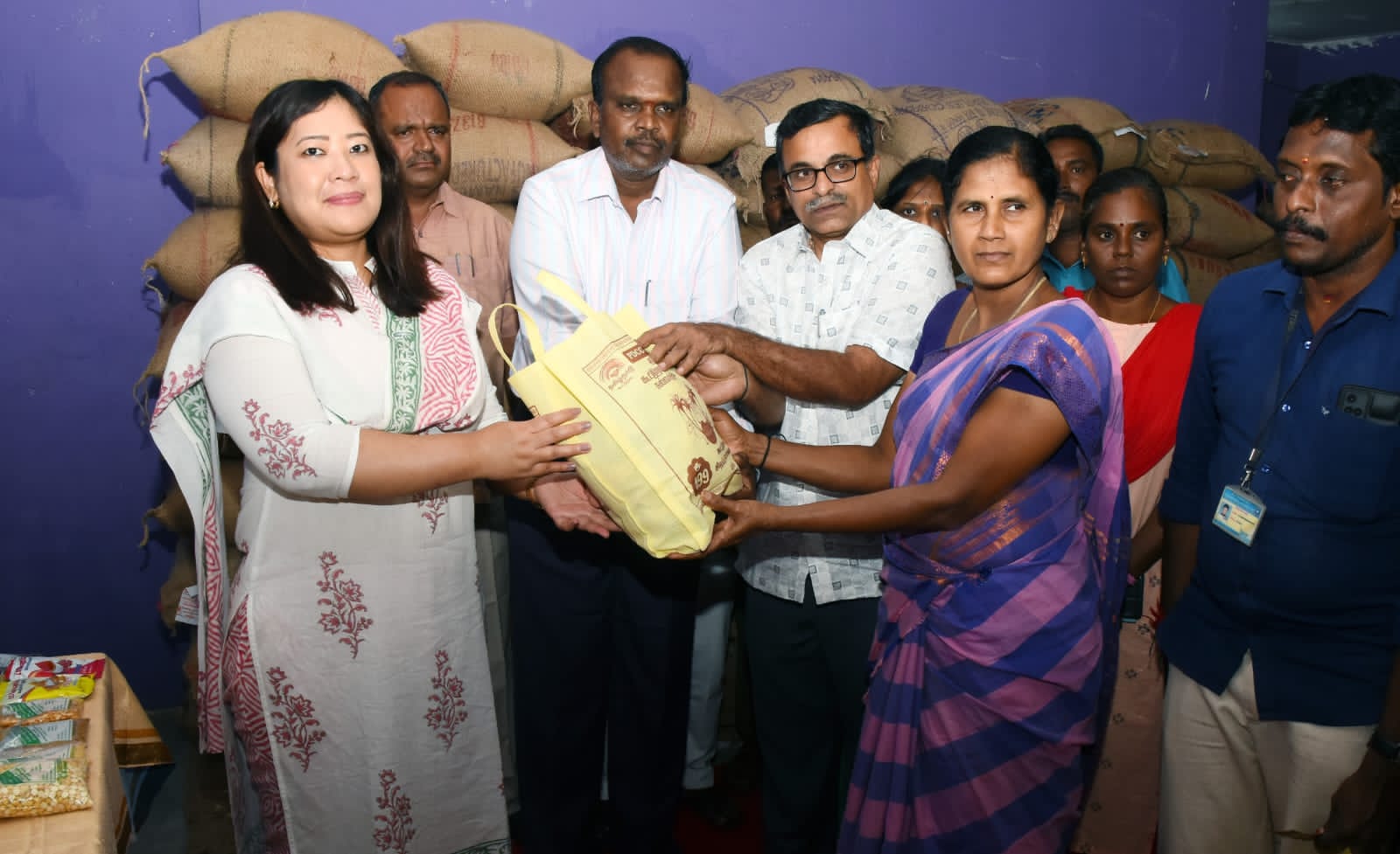 கூட்டுறவு பொங்கல் என்ற மளிகை பொருட்கள் அடங்கிய தொகுப்புகளின் விற்பனையை பெரம்பலூர் மாவட்ட ஆட்சித்தலைவர் கிரேஸ் பச்சாவ் தொடங்கி வைத்தார்